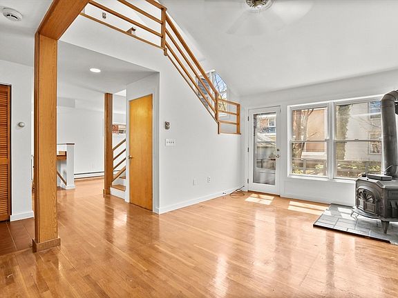 Located on Pond St between Jamaica Pond and Centre Street, 26 Pond Street is close to everything that JP has to offer-green space, easy access to transportation, and charming shops and restaurants. This contemporary designer built single family townhouse with clean lines and modern angles offers 2 plus bedrooms and 1.5 baths and features a big fenced-in backyard and garden. The garage provides parking with two additional driveway spots. From the living room, access the private deck overlooking the green garden. Enjoy all the seasons in your urban garden retreat. In addition to the living room which has a wood burning stove, the first level of this home includes a kitchen, a dining room and a half bath. Upstairs are two bedrooms and full bath. The finished basement has the laundry, a bedroom and a utility room - all of which could be transformed into a large office or family room or primary suite. All offers in hand will be reviewed by 5pm May 6.