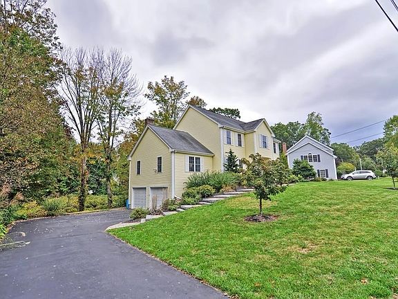 Expansive Colonial in sought after Dorey Estates which includes 2 cul-de-sacs! Gorgeous eat in kitchen with an abundance of cabinets & granite countertops, oversized granite island, stainless steel appliances and recessed lighting. Kitchen flows seamlessly into front to back Family Room with vaulted ceiling, hardwood floors and fireplace w/pellet stove. Formal Dining room with crown molding and wainscoting opens to the Kitchen. Sun-filled Living Room turned "Man Town" in this home with beautiful bay window and hardwoods. Half bath and laundry room complete the first floor. Upstairs awaits a large Master bedroom with walk in closet and full Master Bathroom complete with double vanity, jetted tub and walk in shower. Three additional good size bedrooms and Full Bathroom. Bonus finished Basement with exercise room and additional 27x12 room. Retreat and relax on the oversized deck with a pond view. Town water and Town sewer!
