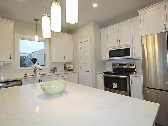 Great builder & excellent product! This modern 2-story home in Dartmouth's newest up and coming sub-division! You will notice the modern design including stone exterior finishing and lovely modern siding with wood grain finishes. The main level 9 foot ceiling of the home features a large living room as you enter the home and a 2 piece bath. The kitchen features loads of cupboard space and a HUGE pantry with luxurious quartz countertops. The dining area is just off the kitchen and both are open to the large family room and which has patio doors leading out to the back deck. This will be fantastic for entertaining. There is also access to the garage on this level. The 2nd floor of this home features a HUGE master bedroom and a large ensuite bathroom featuring double sinks and a beautiful shower with glass shower enclosure and tiles. The second and third bedrooms are also large and bright. The main bath features a tub/shower and there is also a large laundry area on this floor. The lower level of the home has a spacious rec room with a walkout to the back yard, another large(4th) bedroom, and another full bathroom! There is also a utility room for additional storage. This home comes with a 7-year warranty. This home has all of the available upgraded features such as Includes one single and one dual head heat pumps pump, 6 appliance package, landscaping package is 8' on either side. Front to curb and 10' from wall to rear, front and back composite decking, quartz countertops upgraded lighting, backsplash & finished basement. Paved driveway. This modern home could be yours!
