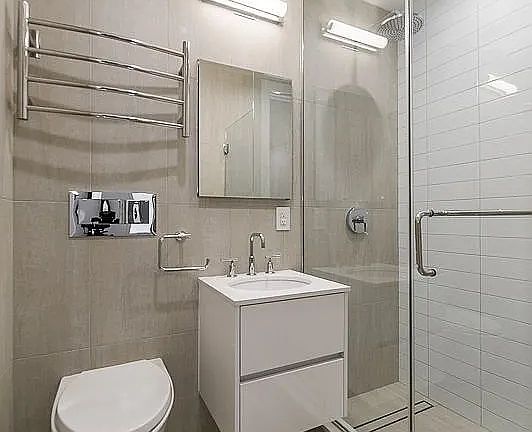 Contemporary interiorCentral acHeated bathroom floorsPre-war style exteriorHeated towel rackGlass-enclosed rainfall showerQueen size bedroom