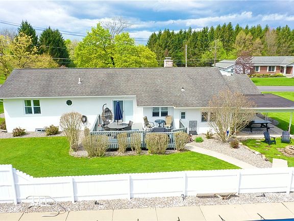 THE IN BETWEEN POINT OF SYRACUSE AND ROCHESTER LIES THIS 4 BEDROOM 1.5 BATH RANCH. SITED ON A DOUBLE CITY LOT 165 X 150 WITH IN-GROUND POOL. WOW WOW!!!! WITH OVER 2300 SQ FEET OF LIVING SPACE INCLUDES BASEMENT AREA THIS HOME HAS BEEN COMPLETELY REMODELED. UPDATED KITCHEN AND APPLIANCES,BOTH BATHROOMS, LAUNDRY-ROOM , FLOORING THROUGH OUT, PAINT INTERIOR AND EXTERIOR, SLIDING DOORS TO DECK AREA OFF DINING ROOM. BASEMENT OFFERS BAR AND SINK NEW CARPETING, POOL TABLE AND FAMILY ROOM SECTIONAL CONVEYS WITH PROPERTY. MUST SEE!!!!!!