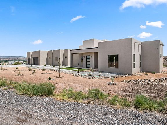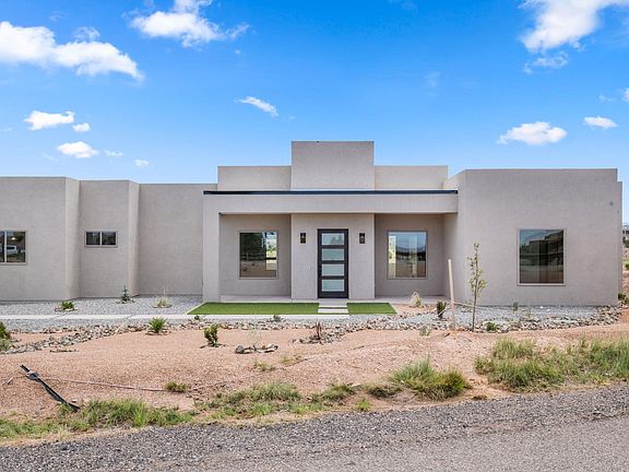 Newly constructed custom-built home in beautiful Placitas! Known for its sunrises, sunsets and views! Open & bright well thought out floor plan connects the living, dining, and kitchen areas, creating an ideal environment for hosting gatherings. The kitchen, featuring a quartz center island with stainless steel appliances, large farm sink and gorgeous custom cabinets. You will love the Kitchenette with plenty of space for a pantry and an extra space for a second refrigerator. Primary bedroom with two oversized walk in closets. The master bath has a freestanding tub, walk in shower with custom tile work and an abundance of counter and cabinet space. The home is tile with carpet in the bedrooms and plenty of storage. You can't forget the oversized 3 car garage that is just under 1,000sqft.