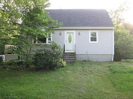 BANK APPROVED! Here is your opportunity to live in a Cape style home sitting on 2.7 acres in a private, serene setting. Three bedrooms and 1.5 bath home with a partially finished basement. Wood burning stove in basement. Hardwood floors in living and dining areas. Slider onto outdoor decking. Enjoy the large open yard and pool with large deck. Plenty of storage in the attached sheds. Washer/dryer hookup in basement.