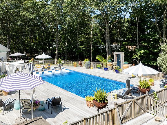 Rental Registration #: RP240709 Escape to this serene, Zen-like resort-style home designed for comfort and relaxation. The main floor features a luxurious primary suite, complemented by a secondary primary suite upstairs, along with two additional guest bedrooms and a full bath. A main floor powder room adds convenience, while the finished lower level offers additional living and entertaining space. Step outside and indulge in your private paradise: relax in the shallow pool lounge with built-in cocktail tables, or in the hot tub, choose from three grilling options- charcoal, gas or the "Egg" and enjoy multiple dining and lounging areas, complete with shaded spots to unwind. A true Hamptons retreat, perfect for effortless summer living. Make your summer plans now, this extraordinary escape will not last...don't miss it.