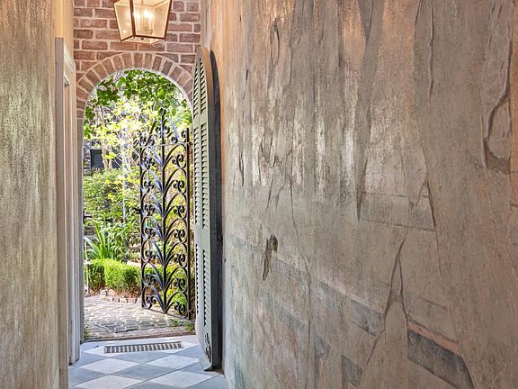 Step into the heart of Charleston's Historic French Quarter and discover 26 Queen Street, a fully restored circa 1790 gem located in the sought-after Johnson's Row. Mere yards from iconic landmarks like Dock Street Theatre, the Huguenot Church, and St. Philip's Church, this exceptional property blends 18th-century charm with modern luxury across nearly 4,000 square feet of living space.The 3,000 SF main house welcomes you through an arched entryway with an antique iron gate, leading into elegant interiors with tall ceilings, original hardwood floors, and historic mantels. A highlight is the unpainted cypress-paneled dining room--believed to be the last of its kind in Charleston. The renovated kitchen features brands like Wolf and Sub-Zero appliances, and the entire residencehas been restored and refinished in 2020/2021, to appeal to the modern buyer while still retaining its authentic period charm. Enjoy the hand painted walls featuring murals and custom details, all artfully executed by renowned local artisan Karl Beckwith Smith. Upstairs, the spacious primary suite includes a cedar closet, wood-burning fireplace, and luxurious full bath. Complementing the primary suite is a very comfortable office or additional bedroom with balcony overlooking the gardens, a charming space which could also make a generous dressing room for any true collector of couture. All fireplaces have been updated to be compatible with gas, chimneys relined, and dampers replaced. Other features include original 18th-century doors with custom graining, all-new electrical, sump pump system tied to city drainage, and newer HVAC systems for year-round comfort. The 966 SF detached guest house offers two bedrooms, a full bath, and an efficient kitchen ideal for visitors or additional rental potential. Enjoy beautiful views of St. Philip's churchyard, abundant natural light, and complete privacy in this studio/carriage house. Set in an X flood zone, this property requires no flood insurance. Relax in the lush Charleston courtyard gardens, and enjoy convenient on-street parking with two city passes available for owners. This is a rare opportunity to own a one of a kind piece of Charleston's storied culture modernized for today's lifestyle, yet timeless in its authenticity and historic charms.