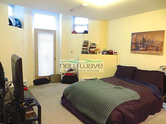 Medium sized garden level studio, carpeted throughout, open view kitchen w/ breakfast bar, granite, all major apps provided, disposable, private exterior space (could grow a small garden here), laundry in building, super quiet building