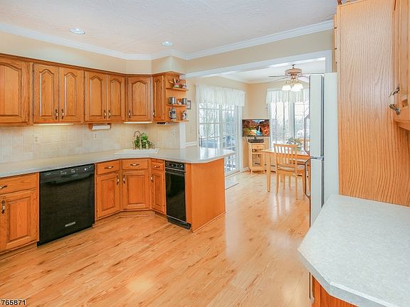 This beautiful 2,500 square foot custom home is located in a cul-de-sac neighborhood within walking distance to the Mt Olive High School. The meticulous home sits on a large, open and private yard.The home has gleaming hardwood floors and extensive crown molding. Spacious addition to home includes a bright and airy breakfast area off the kitchen with picturesque views and sliders to the deck, an extended formal dining room and a large 20x20 great room on the ground level with walk out sliders to patio. The great room is perfect for entertaining, a playroom, a potential in-law suite, endless possibilities! Ground level includes wood burning brick fireplace. Active alarm system and generator hookup. Home is located within 2 miles of popular recreational Turkey Brook Park and main highways!