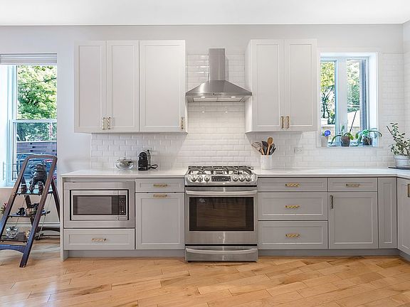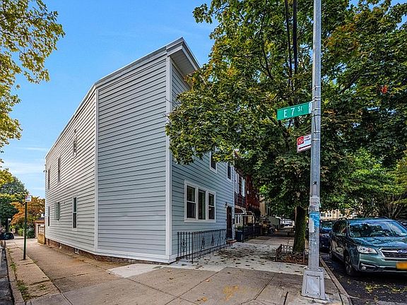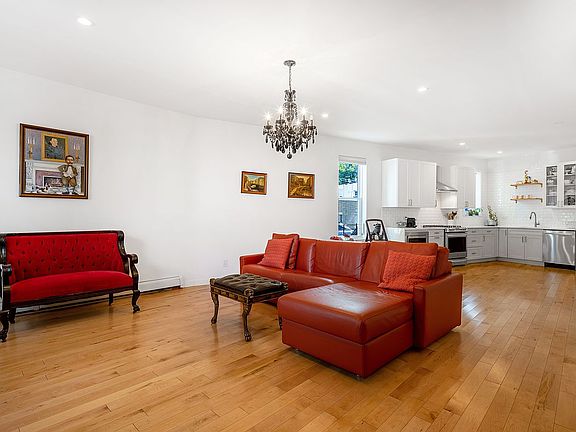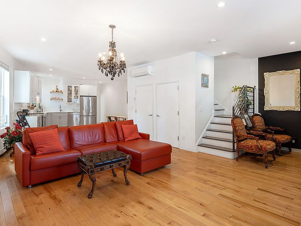 Custom built and designed corner home featuring over 3000Sf of interior space with a roof deck. On the entrance level you are welcomed into a large living area, an open kitchen and dining area. The first floor has a half bath and a bedroom with a door that leads to the back yard of the house.