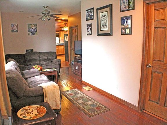 Always dreaming of that affordable house with the big front porch and easy quaint one level living? Well, all you need to do is to bring your front porch rocking chairs because this adorable ranch home has not only a large front covered porch but a back deck as well! This is a cozy yet airy 2 bedroom 1 bath home sits on a nice level lot with a large shed. Don't let the age of the house fool you! This house was renovated in 2010 to included new sheetrock and new insulation in the ceilings and walls, new electric, new plumbing, new roof and sheathing, new windows, new siding, new kitchen cabinets with granite counters and new appliances, new bathroom, new front and back porches and more! Dining area is open to the kitchen which has a lot of character including a large pantry and island cook top with stainless range hood. Great hardwood floors in all the common areas. Cathedral/vaulted ceilings. This house really has it all!