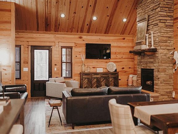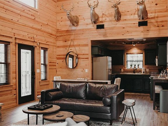Welcome to Oh Deer, your ultimate retreat nestled in the heart of serene nature while still being conveniently close to all the amenities of Hochatown. This rustic modern short term rental cabin offers a perfect blend of tranquility and accessibility, making it an ideal getaway for families, couples, and friends seeking relaxation and adventure. The cabin showcases a harmonious fusion of rustic charm and contemporary design, creating a warm and inviting atmosphere. Surrounded by towering trees and lush greenery, the cabin truly feels like a hidden gem, providing a sense of seclusion and privacy. After you walk up to the wrap around porch, you will step inside and be enchanted by the cabin's modern yet cozy interior. The living area features a beautiful electric fireplace. . Oh Deer features three well-appointed bedrooms, each designed to provide utmost comfort and restful sleep. The main bedroom on the main floor boasts a comfortable king-sized bed and an en-suite bathroom for added convenience. A secondary bedroom on the main floor offers cozy accommodations with a king-sized bed. The cabin also includes a second bathroom on this floor, complete with modern fixtures and a soothing ambiance. The third bedroom upstairs is found behind a gorgeous custom barn door complete with another king-sized bed as well as a bunk bed featuring a full bed on bottom and a twin bed on top. This bedroom has access to their own half bathroom upstairs for convenience. Step outside onto the expansive deck and wrap around porch and breathe in the fresh mountain air, and unwind in the inviting hot tub. Although Oh Deer offers an idyllic retreat away from the hustle and bustle, it is conveniently located close to a variety of shops, restaurants, and entertainment options. A short drive away, you'll find a selection of local shops where you can indulge in some retail therapy. Sample the local cuisine at the nearby restaurants or enjoy a refreshing drink at one of the breweries in the area.
