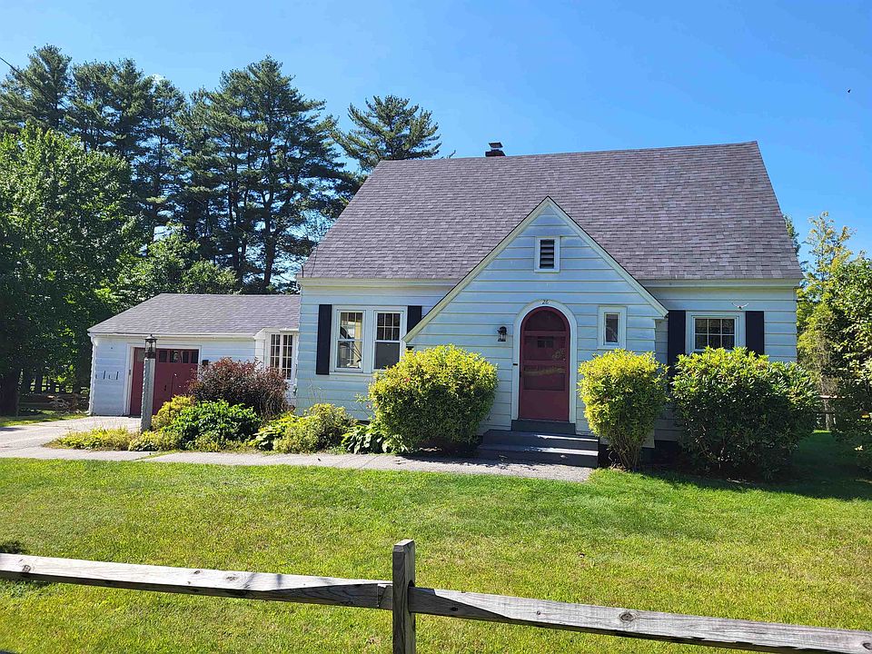 This charming cape style home is located in a wonderful neighborhood setting. The grounds are spectacular with spacious lawn areas, trees, shrubbery, and post and rail fencing. The large fenced back yard borders a public par 3 golf course offering a nice view. It also includes a deck, a patio and a treehouse! The interior of the home is bright, warm and inviting. As you enter the home through the unheated sunroom you will immediately feel at home. The home is tastefully appointed with a mix of wood tones and neutral colors. The open concept kitchen/dining area is gorgeous with new cabinets, quartz counters, a farmers sink, updated lighting and new appliances. One will enjoy relaxing in the large living room with arched doorways and a bow window letting in plenty of natural light. The first floor has 2 bedrooms and a full bath. One bedroom is currently a first floor laundry area and sewing room. The second floor has 2 spacious bedrooms and a full bath. A new Architectural Shingled roof was just installed in August.