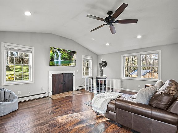 Offer deadline Monday 12/23 Noon . This charming 2-3 bedroom, 1.5-bath home in Templeton, MA blends comfort and style. Head inside to see the new vinyl flooring throughout! The cozy dining room flows seamlessly into a kitchen with stainless steel appliances, newly installed solid countertops, a breakfast bar, and an island—perfect for everyday meals and entertaining. The living room features vaulted ceilings, an abundance of natural light, a cozy wood stove, and a door leading to a peaceful back patio. A convenient half bath is just off the living room. Down the hall, you’ll find a full bath with a tiled tub/shower and a washer/dryer tucked away. Both bedrooms are located on the first floor, offering a ceiling fan, closet, and ductless mini-split systems. The basement, accessed from the driveway and first floor, offers extra storage and a bonus room with endless possibilities. Outside, enjoy a private patio, a new storage shed, and a well-maintained yard.