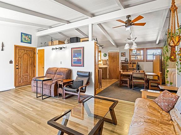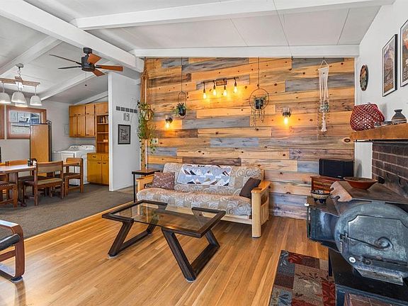 Location, location, this is one of the most coveted streets in Durango. A quiet circle, walkable to the river + bike trail, schools, grocery store, rec center, library, and all that the North end of Durango has to offer. This is an incredible price point to enter this neighborhood. Single level home, with high ceilings, original red oak wood floors throughout most. Kitchen has been updated with Alder cabinetry and marbled quartz countertops. Most windows are Pella, all three doors have new Anderson storm doors with rolling screens. Patio door has a full panel insert for screen or storm conditions. Light and open, with a large woodstove to keep you cozy during those short winter days, and the wood accent wall is custom designed blue stain pine. Thoughtfully maintained throughout the years; the roof and sewer line have been redone, and there is a radon system in place. Fenced yard has patio + fenced garden, a pergola, and several shed/ storage spaces. Carport in front for some cover, mature trees, and all very low maintenance.