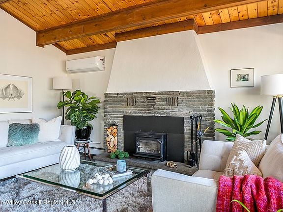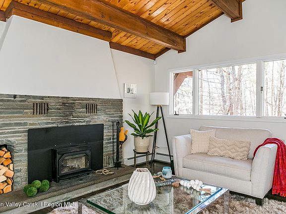 Nestled in the heart of the Catskills, this stunningly reimagined chalet-style home blends classic mountain charm with modern luxury. Lovingly updated and meticulously maintained, this three-bedroom retreat offers the perfect balance of cozy comfort and contemporary sophistication—all set on 2.48 private acres surrounded by serene woodlands.