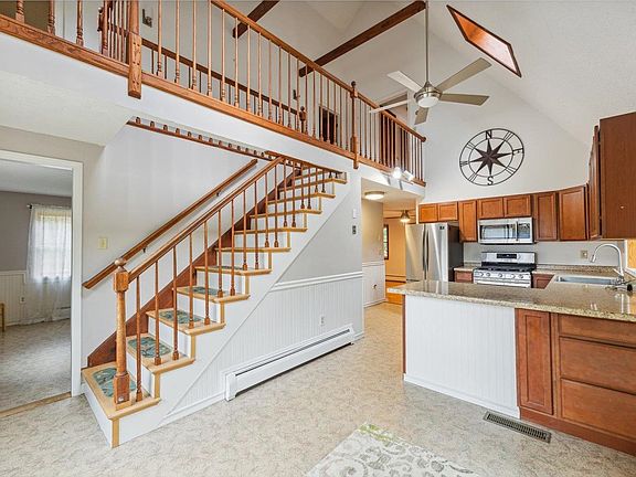 Country living is really what this home is all about. The Contoocook River is across the street and offers great opportunity for kayaking, wading, and fishing. Cross the iron bridge and you have direct access to the rail trail for walking, biking, x-country skiing, and snowmobiling. This home has a nice open concept design that provides bright, natural light living spaces. The first floor includes a potential first floor bedroom, a full bath, living, kitchen and dining, and direct access to the back deck and patio for outdoor enjoyment. Upstairs are 3 bedrooms (one with a balcony) and a full bathroom. This property is a 1.04 acres corner lot that is bounded by a nice treelined yard offering privacy and natural shade. This home has is ready for its new owner.