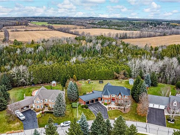 FULLY RENOVATED EXECUTIVE ESTATE BACKING ONTO CONSERVATION WITH LUXURY UPGRADES & A SPACIOUS DESIGN! Welcome to the estate home you’ve been dreaming of. This stunning home boasts countless updates, over 5,500 total sq. ft (3,635 finished sq. ft.) and sits on an executive pie-shaped lot backing onto conservation lands. Jaw-dropping curb appeal with custom landscaping, triple-plus car garage with new doors, 8 driveway spaces, updated exterior doors, and a metal roof. The huge backyard features more custom landscaping, a patio area, a fire pit, a pond feature, a deck, a large storage shed, and plenty of privacy and space for your family. Make your way inside and immediately notice the hand-scraped hardwood flooring and crown moulding throughout the home, bathed in the light of over 50 windows, most with custom California shutters. Take in the grand entryway and the sprawling main floor that features main floor laundry, den, office, formal dining room, great room with gas fireplace and built-in shelving, and a chef-inspired custom kitchen with ultra high-end finishes, including solid quartz countertops. At the top of the curved staircase, you’ll find five very generously sized bedrooms, two four-piece bathrooms including a Jack and Jill, and a luxurious six-piece primary ensuite with a 9x10 ft. walk-in closet. Downstairs, the walk-out basement is partially finished, adding additional rooms and living space for your family. A high-end, high-efficiency furnace and air conditioner were recently installed. No expense was spared in ensuring this home would provide peace of mind for many years to come. Everything has already been done - all this home needs is for you and your family to come create new memories.