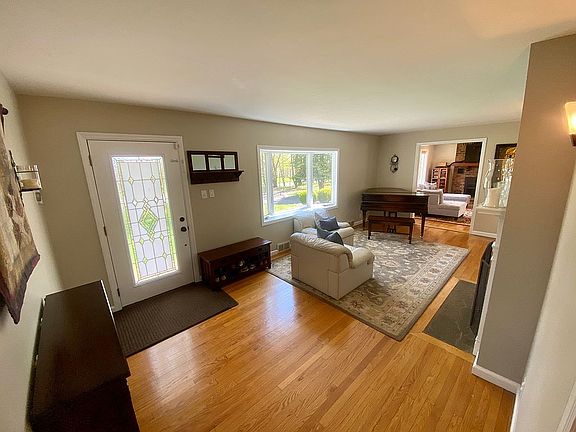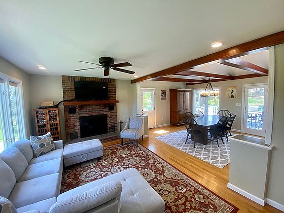 - RoomLivingRoomFeatures: Bay/Bow Window, Dec Molding, Floor - Wood, Fireplace - Woodburning