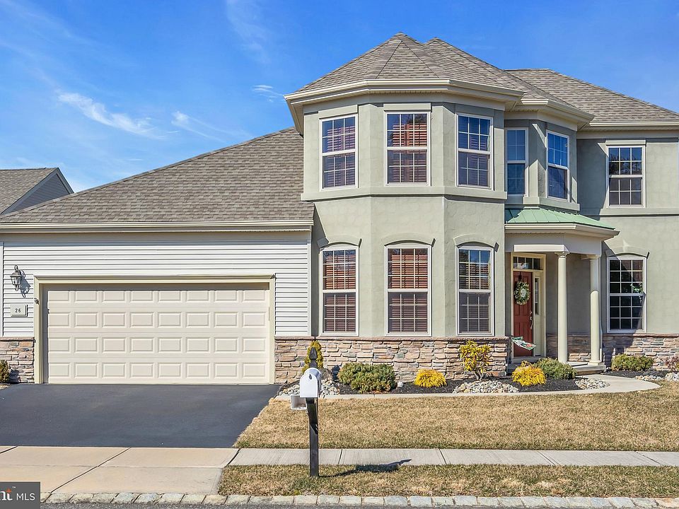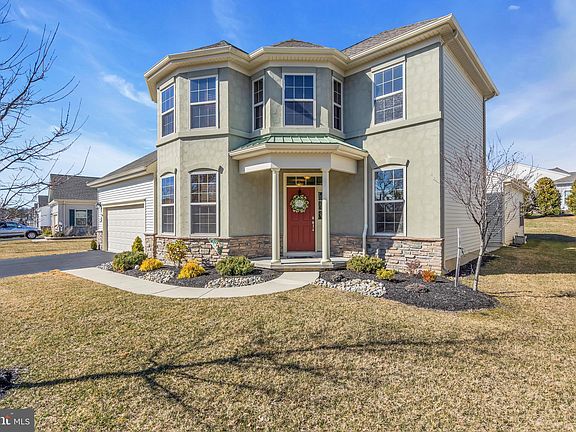This Elegant and Spacious Montauk Grande was built 2016 and boasts 3292 sf with 3 bedrooms, 3 ½ baths, an office and 2nd level living area. Step through the distinctive covered front entry way into the foyer, the 2-story living room is to the right and office with French doors to the left. Just past the stairs and powder room, you will pass thru the formal dining area adjacent to semi-private outdoor patio on side of the home. Note the high ceilings, crown molding, and gleaming hardwood floors as you make your way to the Beautiful Kitchen with Café color 42'' Maple cabinets and Baltic Brown granite counters, tile backsplash, kitchen desk and large center island with extra seating. Open concept floor plan perfect for entertaining family and friends as they can flow between the kitchen, family room, dining room and breakfast room with sliding door and step out to the backyard and patio area that has a built-in gas line for grilling. Family Room has gas fireplace with mantle and marble surround. Luxurious Owner's suite features 2 walk-in closets and bathroom with 2 separate "high-boy" comfort height vanities, private toilet, corner soaking tub, and fully tiled walk-in shower with seat. Plenty of room for family and out of town guests to stay over comfortably, giving them privacy and space. Second bedroom on main level has a walk-in closet and private full bathroom with high-boy vanity. Upstairs is the Third bedroom (with plantation shutters), living/media room, full bathroom with tiled walk-in shower and walk-in attic storage room. Upstairs hallway with spindled railings overlooks living room. Start your next chapter at the Jersey Shore and the Active Adult lifestyle at Heritage Point community with Two Clubhouses, indoor and outdoor pools, tennis, bocce, shuffleboard, pickle ball, walking trails, hot tub, saunas, fitness center, putting green, horseshoe pits, fitness center, ballroom, game rooms, library, lots of and activities and planned trips. Close to the GSP, shopping, and the pristine Ocean beaches of LBI. Atlantic City a short ride away. Fireplace photo's digitially enhanced fire.