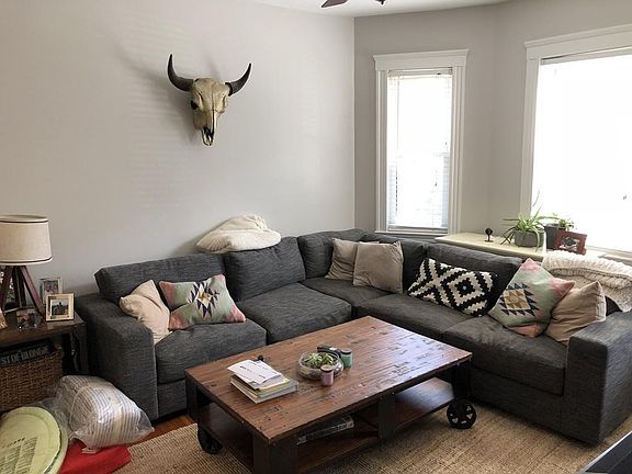 Spectacular condo quality 3 bedroom duplex apartment in Boston's Polis Triangle - conveniently located in close proximity to major highways, South Boston, and downtown. Main level offers full size living and dining room with hardwood floors and built in storage, fully renovated kitchen with white shaker cabinets, large center island, quartz countertops, tile backsplash, and new stainless steel appliances. Separate laundry area with stackable washer/dryer and direct access to private deck and fenced in yard. Recently renovated full bathroom with modern penny tile floors, subway tile bath, and generously sized vanity. The main level has 2 bedrooms of about equal size, and also a separate bonus room which would make a great space to work from home! Lower level is fully finished and consists of a large master bedroom with private full modern bathroom. Rent price included exclusive use of driveway (room for2-3 cars tandem) and cable/internet. Pets negotiable.