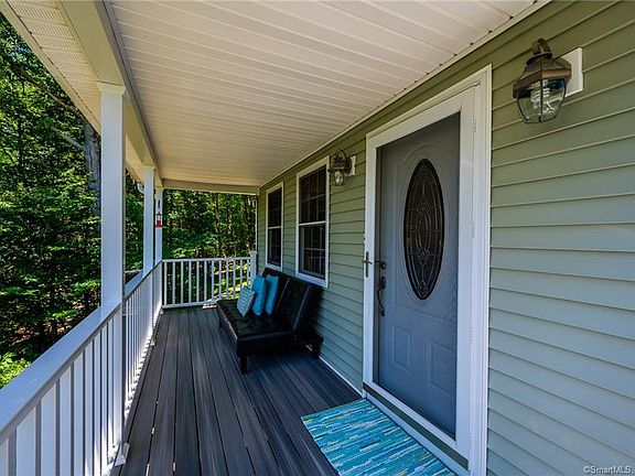 PRIVATE & PEACEFUL!! Make time to see this home which is located in a small community and is tucked away from the road. This lovely setting will allow time to relax and enjoy the 2.31 acres of the quietness of nature. The exterior spaces include a covered front porch, a back deck and lovely terraces of stone. The interior of this Cape is spotless and bright. Finishes such as hardwood floors, granite counters, vessel sink, light colors and open floor plan make this a home a winner. Three bedrooms (one on the main floor), 2 full baths, a finished lower level and 2 car garage complete this fabulous property. Home is located less than one mile from Bozrah Recreaction and Senior Center which has a Playscape, and also Maples Park which hosts the Bozrah Farmers Market and provides a network of hiking trails. Home is heated by oil except for lower level which has electric baseboard heat