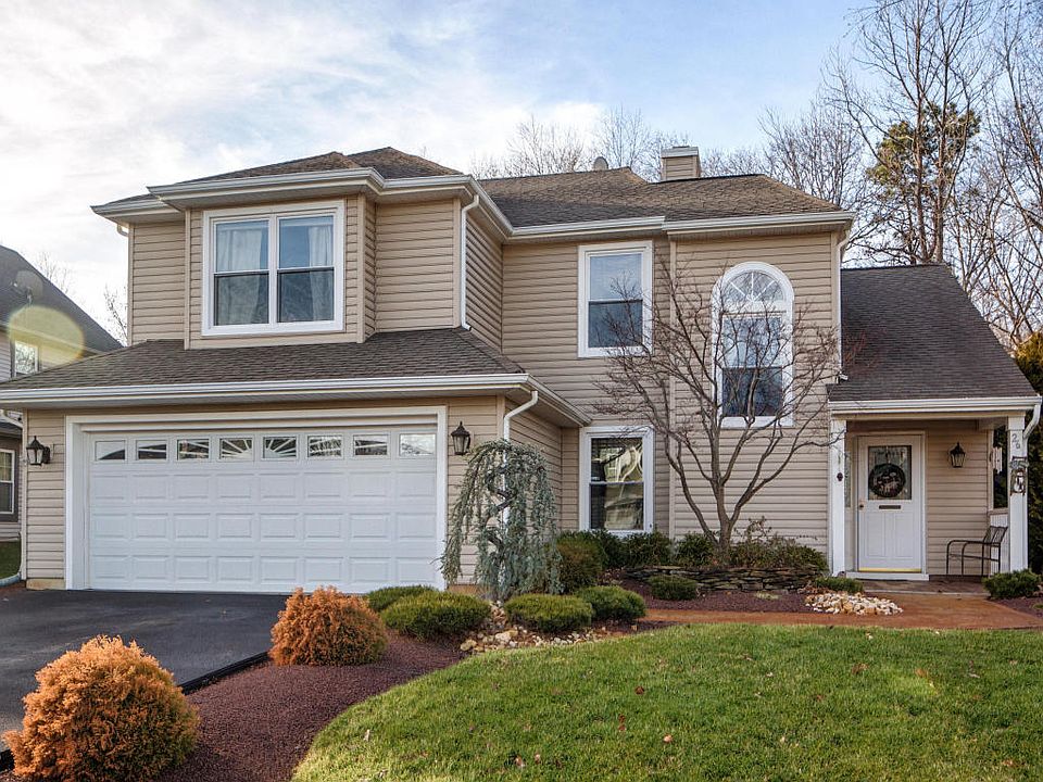 Professionally landscaped Colonial home located in the northern part of Howell. Vinyl siding,windows and garage door updated in 2012. Bathrooms have also been updated. Master bathroom has marble floors and tub has been replaced with an over sized shower stall. California closets can be found in the master bedroom and 2nd bedroom. On the main level all floors were replaced. Gas fireplace is located in family room. Sliding door replaced in 2010, opens onto a spacious trex deck that can be shaded by the retractable awning.Hot tub is situated on a separate patio with access from the deck. An additional wood platform is used for a gazebo in warm weather. Fenced backyard includes 2 sheds and property backs up to wooded area.