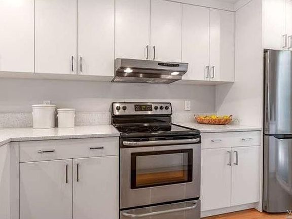 Chic Sausalito abode with picturesque Sausalito harbor views. Light infused 2BD/1.5BA townhome style condo (no one living above or below) offers an abundance of privacy and easy access to hiking trails and the great outdoors. The open floor plan with wood plank flooring is both functional and easy to maintain. The remodeled kitchen is a chef's delight with quartz counter tops, breakfast bar, and lots of cabinets that opens to the living room/dining area. An easily accessible deck off the living room includes a Bar-B-Q and views of the Sausalito harbor. A one-half bath and large storage closet complete the ground level living area. The upper level includes two good sized bedrooms with extra high vaulted ceilings and lighted fans. The primary bedroom offers spectacular Sausalito harbor and Mt. Tam views. The second bedroom offers peaceful verdant views. What a great way to wake up in the morning! The home has been updated with newer windows, recessed lighting, newer furnace, updated electrical & newer carpet. Recently resurfaced community pool and covered carport parking also included! Owner pays heat, water, and trash. Owner pays heat, water, trash. One small dog or cat will be considered with additional deposit.