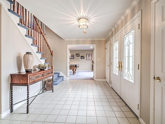 Beautiful bricked front 4 BDRM 2.5 BA in the charming town of Farmingdale on a quiet cul de sac close to the shore. Kitchen features ~ 2 yr young SS Appls,wine rack & slider to Deck w/hot tub overlooking a private serene bkyd w/fire pit.Formal D/R has deco mouldings & porcelian tile. Huge L/R w/French Doors, being used as a game rm is perfect for family fun. Step down,Vaulted ceiling F/R w/ brick front Fireplace converted to a woodburning insert. ( is a gas line can be converted back). Dble entry doors to gorgeous MBR Suite w/ sitting area & gorgeous Brazailian cherry flooring. Huge MBA has dble vanity & granite c/tops, glass enclosed shower w/ multi heads & Jacuzzi tub. 5ft crawl space under home. 2 HWH's, 2 zone HVAC ~ 6 yrs. Timberline Roof ~2010. Anderson windows. Alarm Sys. MORE.