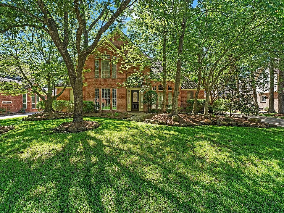 Gorgeous and updated home in the heart of The Woodlands with a stunning Texas Pools pool/spa with three waterfalls, covered porch, and wooded yard! Double crown molding and stunning columns. Island kitchen with granite, stainless appliances, under-cabinet lights, walk-in pantry. Formal Dining room with tray ceiling and double doors to Kitchen. Handsome study with wall of built-ins and French doors. Owner's retreat has fantastic pool views and remodeled bath with dual sinks, tiled shower, Bain Ultra jetted tub with air-jet bath technology. Two walk-in closets with built-in shelving and B/I dresser for her. Upstairs is large Game room with cove ceiling, built-in desk and entertainment center, & double doors for sound control. Three additional bedrooms and two baths up (one Hollywood). Oversized two car garage w/carport areas. Roof 2016. Downstairs heating/air 2011. Upstairs new compressor 2012. Most windows replaced 2011. See list of upgrades online. See our on-line video tour!