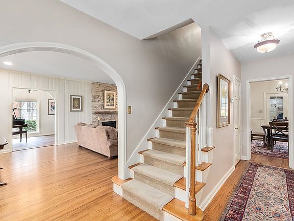 An extraordinary opportunity within the Eastborough community, 26 S. Colonial provides a classic and timeless design offering 4 bedrooms and 5 bathrooms, this spacious property includes a new composite roof and gutter guards in 2021, a main level office with luxury vinyl flooring, wood beam ceiling, and large windows, a lovely living room with recessed lighting, fireplace with stone surround, crown molding, large windows to bring in natural light, formal and informal dining areas, and a wonderful kitchen with granite countertops, tile backsplash, beverage fridge, stainless steel appliances, and a door to the patio. This main level also features a family room with luxury vinyl flooring, recessed lighting, ceiling fan, large windows, crown molding, surround sound speakers, and a door to the covered patio. Spend peaceful nights in the main level master suite complete with new luxury vinyl flooring, freshly painted walls, ceiling fan, windows, a walk in closet with built in shelves and rods, private bathroom with tile flooring, a soaker tub, tile shower, and a beautiful chandelier. The upper level features 2 bedrooms, a newly updated bathroom, and another master suite complete with carpeting, recessed lighting, a large window, a private oasis bathroom with tile flooring, air bubble tub, granite vanity, a walk in closet, and a window accompanied with a window seat with storage. Hang out in this finished basement complete with carpeting, daylight windows, fluorescent lighting, walk in closet, and features a full bathroom and a laundry room. Sit back and relax on the covered patio overlooking this spacious backyard with an outdoor fire place, ceiling fan, automatic shade, garden shed complete with a work bench and electricity, and the rear load 2 car attached garage!