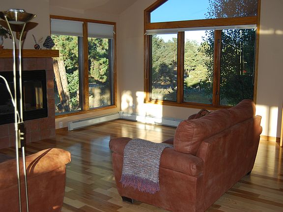 Great access to I-70, Denver and mountain ski resorts from this foothills home surrounded by pines. This single-family, 2-story home w/ finished basement includes 4 bedrooms & 3 bathrooms, vaulted ceilings, large windows w/ private views. Main level has great room with gas fireplace, kitchen and dining room. Beautiful natural-finish hickory wood floors just installed. Kitchen has granite-slab countertops, walk-in pantry, casual eating space w/ additional counter seating. Master bedroom has mountain views & private bathroom w/ walk-in closet. Finished basement w/ family room provides plenty of space for kids & young adults. Entertain friends & family on spacious, two-level, maintenance-free deck w/ pergola & sunshade. Energy-efficient home w/ rooftop solar electric & sunny exposure! Incredible location convenient to RTD commuter lot and I-70, 5-minute walk to highly rated elementary school. Agent commissions are always negotiable! Don't miss out on this beautiful home because of the unconventional commission! Ask your agent or call TRELORA for more details