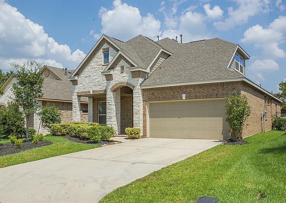 Beautiful Poplar Floor Plan. Great location walking distance to elementary school, park and trails.Home offers large closets and two bedrooms down.Kitchen has granite countertops, stainless steel appliances and upgraded cabinets.Tile floors in entry, living, dining, kitchen, utility and breakfast rooms.Living room has a corner stone fireplace. Master bedroom has high ceilings .Home features mud area, front porch and covered back porch.Refrig,Washer, & Dryer included.