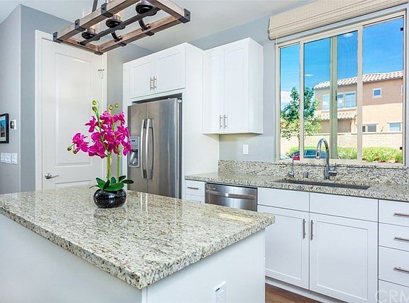 Welcome to the prestigious community of Baker Ranch! Approximately 1,712Sqft., this four-bedroom home has an open-concept floor plan with an abundance of natural light. The first-floor bedroom and full bath offers plenty of versatility for expanding families, guests or a home office. The outdoor living area with custom water features and stone fire pit creates a space for social gatherings or tranquil relaxation. Prepare elegant meals in the gourmet kitchen that will inspire your inner chef with its granite counters, luxurious center island, oversized pantry, custom cabinets, and stainless steel appliances! Upstairs, you will find the spacious master suite, two additional bedrooms, and large laundry room. Upgrades include beautiful hardwood floors throughout entire first floor, stainless steel appliances, plantation shutters upstairs and designer bamboo woven shades downstairs, custom paint, dual Xylem tempered glass bowl vanities and rainfall shower head in master bath. Baker Ranch residents have access to multiple resort-style pools and several parks!! Award winning schools and No Mello-Roos!