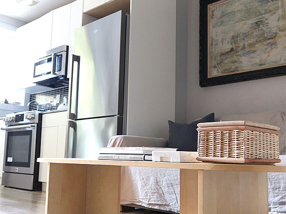 Tastefully furnished and finished. Floor through sun-filled 1 bedroom in Prime Ft Greene. One block to Ft greene Park. Open kitchen with marble countertops, stainless steel appliances, vintage suede dining chairs and marble table. Comfortable bath with generously sized tub, heated marble floor, and ample light. Deep sofa, smart TV, new heat/A/C. This apartment is peaceful and quiet without sacrificing convenience. Available 3-12 months