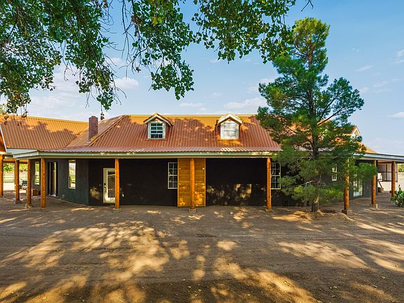 This beautiful 7800 sf adobe home features 5 bedrooms, 5 bathrooms. sitting on a picture perfect Socorro ranch/farm setting. This property features, 25.81 acre ft of 1927 MRGCD ditch water rights . There is a separate domestic well for use for livestock and horses plus community water for the household. Home features 2 kiva FP's, wood stove, large entertainment area with cowboy bar and. Vigas, wood posts, and beams provide a stunning feel of new and old styling. 14000sf of copper colored metal roof, wrap around porch overlooking green fields and horse corral. Movie Land of Dreams with Matt Dillon was filmed on this unique property. ** 36.876 acre ft of separate irrigation well water rights for sale at $650,000