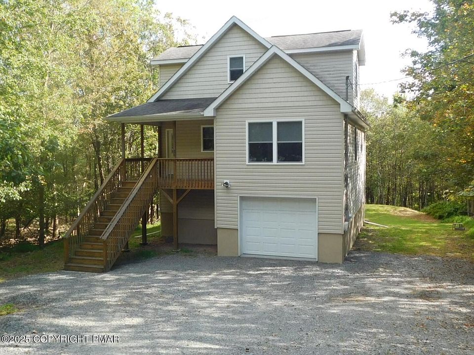 A Unique Home,Located in Carbon County Pa ,in the picturesque Pocono's,close to skiing hiking and boating.The home has 3 bedrooms,2 full bath,and a loft.That has been recently been updated.The improvements include new sink and vanities in the bathrooms,new carpet in bedrooms and loft new solid core doors throughout.The home features a covered front porch and covered back deck off the eating area.The home also has a full basement and a garage under house,and over sized driveway for ample parking.