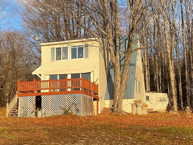 4 Room, 2 bedroom, 1 bath A-frame has an amazing view towards the Presidential Mountains. , watch planes take off and land at the Berlin Airport. House is vinyl sided and has a metal roof, a deck off of the front. Interior is in need of some finishing touches. This could be the start of a great second home or a full time house. Oversized garage with storage above. Located in a secluded area for plenty of privacy.