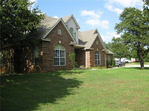 Large 3 bedroom, 3 bath home on approx 2.5 ac (MOL). Has an extra room on the back that could be used as an enclosed patio room,exercise or more living space and there is an almost finished room above the garage. Has H/A just needs to be finished. Kitchen has an electric drop in with oven & there is a 2nd electric oven for extra convenience. Formal dining room now being used as an office. Tile & carpet flooring. Small part of backyard is fenced for pets. House is total electric, 2 units for air.Ceiling fans thruout the house. Roof was replaced in 2014. Paved road to the property and has a circle gravel drive and separate drive to mobile home. MOBILE HOME will be removed!!!