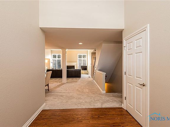Fantastic custom built 3 bedroom, 3 bath villa is beautifully landscaped. Large foyer, open floor plan, fresh neutral paint and new carpet, beautiful wood floors, crown molding, loads of natural light. Spacious kitchen with white cabinets, wood floor, tile backsplash, breakfast bar and eating area. Relax in the sunroom overlooking private yard. 1st floor master bedroom and 1st floor laundry. Huge loft on upper level overlooks family room. Full bedroom and bath on upper level. Gigantic, 650SF, rec room in bsmt. Walk-in attic and storage closet provide tons of storage. Condo fee of $375/quarter.