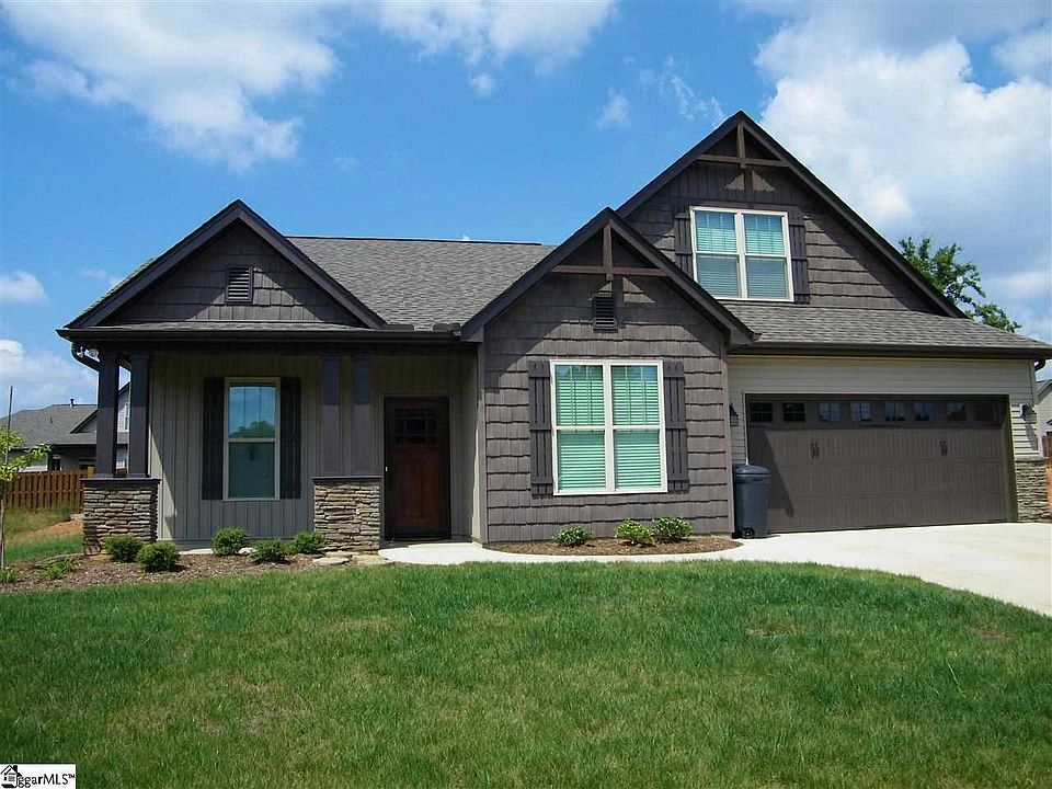 CRAFTSMAN STYLE HOMES WITH EACH HOUSE HAVING A LOT OF PERSONALITY. VERY PRIVATE AREA WITH FENCING FOR THE COMPLETE NEIGHBORHOOD. EXTENSIVE LANDSCAPING THROUGHOUT ALONG WITH SIDEWALKS AND CUL DE SAC STREETS. CONVENIENT LOCATION NEAR MAULDIN. WONDERFUL NEW FLOOR PLAN WITH MANY QUALITY FEATURES INCLUDING MASTER BEDROOM ON THE MAIN LEVEL, GRANITE COUNTER TOPS IN KITCHEN TO ACCENT THE 42" KITCHEN CABINETS WITH CROWN MOLDING AND GLASS ACCENT DOORS, HANDSCRAPED 5' HARDWOOD FLOORS IN ALL PUBLIC AREAS, STAINLESS STEEL APPLIANCES, OIL RUBBED BRONZE FAUCETS, ROMAN TUB FAUCET, COVERED FRONT WITH STACKED STONE TRIM AND WONDERFUL COVERED BACK PORCH PLUS A PATIO FOR YOUR GRILL, FULLY SODDED YARD FRONT AND BACK, IRRIGATION SYSTEM IN FRONT AND BACK YARD, STACKED STONE TRIM ON THE EXTERIOR AND STACKED STONE FIREPLACE WITH GAS LOGS, ANDERSON DOUBLE PANE WINDOWS (THERMAL), UPSTAIRS BEDROOM COULD BE USED AS BONUS/MEDIA ROOM