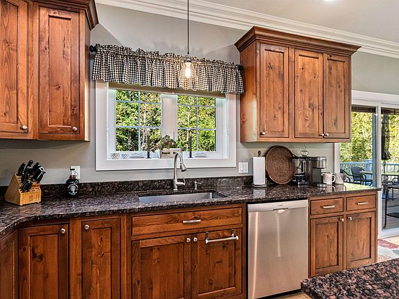 Deeded lakefront accessFormal dining areaSpacious back deckExquisite gardensCustom closetsLarge wraparound front deckHigh-end finishes