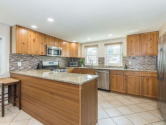 Beautifully Updated Colonial Home featuring an Open Floor Plan! The newer kitchen offers granite counters & breakfast bar. The two full baths have been completely renovated! There's a large formal DR & spacious LR. You'll fall in love with the huge backyard featuring a large deck, patio and lots of level lawn to enjoy or plant a garden! This home also features all new vinyl fencing for privacy and new vinyl siding, too. There is a walk-up attic which is great for storage. Laundry room on the first floor. It's in a great section of town. Close to shopping & NYC Bus (14 miles to NYC) Excellent schools. Plenty of parking in driveway for at least 7 cars! This is a NO FLOOD area.