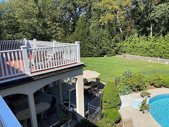Stunning Colonial, completely rebuilt in 2005. A grand foyer with double height ceilings and sweeping staircase. Formal living room, formal dining room with fireplace. Chef's kitchen with Wolf stove, Subzero fridge two Bosch dishwashers and center island. Great room with double height ceilings. fireplace, and wet bar. First floor bedroom suite complete with sitting room, walk in closet and full bath. Mud room, laundry room, and three car garage complete the main level. Upper level includes generous primary bedroom with French doors that leads to a walk out balcony,. Spa like bath and walk in closet make this complete. Four other large bedrooms are on the second level three have walk outs to balconies that overlook the backyard pool. Office area also has access to balcony through French doors. Finished attic, and finished basement are perfect for a gym or bonus area. Outside is an at home oasis! In ground pool with slide, outdoor kitchen, playground, and bocce ball court are all there to be enjoyed on one level acre!
