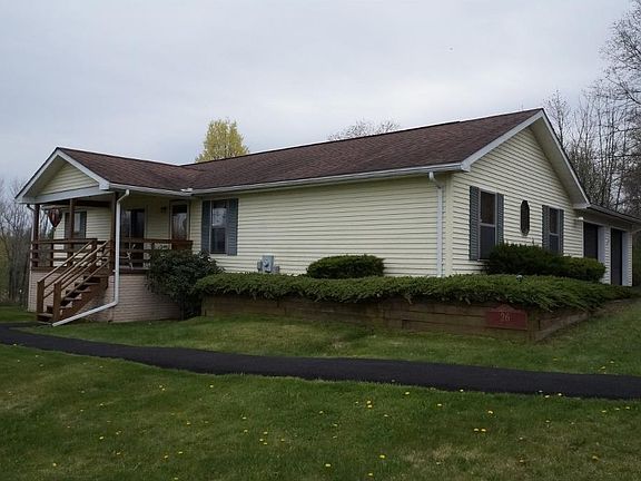 Back on the market! Buyers financing fell through. Nice ranch home located on 2.2 park-like acres. Features include kitchen with silestone countertops and hickory finish cabinets, living room with sliding glass doors leading to deck, formal dining room, and a family room with fireplace. House currently has two bedrooms but could easily be converted back to a three bedroom. There is a two car garage and shed for extra storage space. Electric in place for a pool. Deeded pond rights so you can enjoy the summer swimming or riding a non-motor boat on the water.