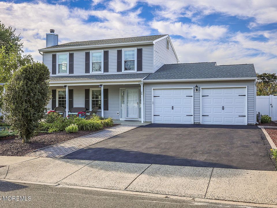 Extremely well maintained, low maintenance colonial in the popular Oak Glen community! A cozy wrap around porch was added along with an enormous, double sized family room making this one of the largest 3 bedroom models here! Hardwood floors adorn the entire second floor, living room, dining room & stairs. Low maintenance ceramic tile connects the bright, spacious foyer with the kitchen and a thick, comfy, newer carpet is in the family room to keep the kids safe. The home offers many upgrades over the past 5 years including a new roof, front siding, updated baths, garage doors, water heater and all new Samsung kitchen appliances. The rear yard is fenced & landscaped and includes a storage shed, a large paver patio and a generous play area for children.