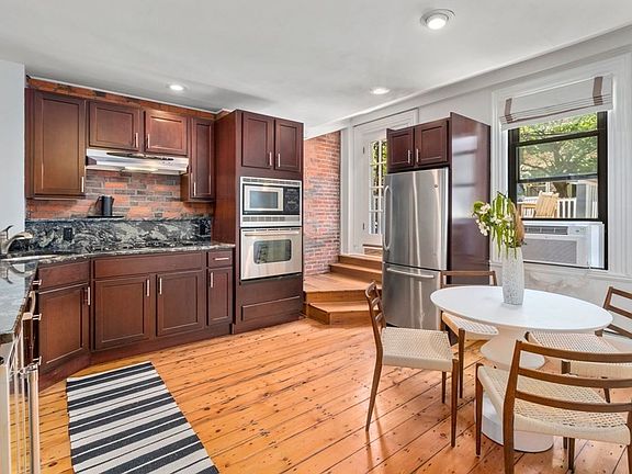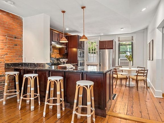 Gaslight district! 2+ bedroom on sought after Soley street in a handsome brick bldg! Open cherry/stainless/granite eat-in kitchen with spacious island opens onto the living room, with a brick accent wall. Walk straight out to your private deck and down to a nicely sized enclosed patio, a wonderful layout for entertaining! This level also offers a classic marble-tiled full bath. The lower level includes the main bedroom which is spacious enough for a king bed and offers full windows, /double closets, and a full bath. Two additional rooms on the lower level allow for a flexible setup for many living options including WFH. Additional features include pumpkin pine floors, and a washer/dryer in the unit all in a pet-friendly association making this a great place to call home!
