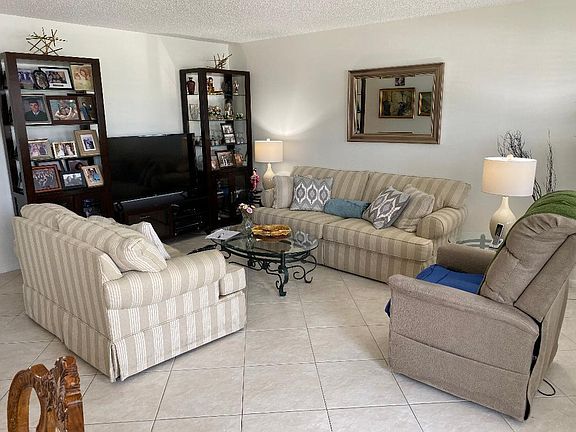 Spectacular and very desirable Ground Floor condo with fabulous water views. This oversized two bedroom, TWO FULL NEW BATHS, lake side beauty has it ALL. Brand NEW HURRICANE IMPACT WINDOWS, New window blinds, Brand NEW Patio with New Sliding Windows, new carpets, updated furniture, some new appliances. Walk to pool, and across from the Bus stop is very convenient. 55+ Community/HOA approval required . No renting and no pets. Must meet CV financial guidelines. PROOF of funds and earnings to be verified.