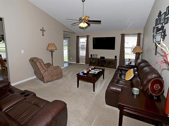 Beautiful well maintained Ranch style home on a Cul-De-Sac in Keeneland Subdivision. Great Location with super easy access to Hwy 70 & David Hoekel Pkwy Exit. Entry foyer with Engineered Hardwood flooring. 4 Bedrooms 2 Full Baths on Main Level. Spacious Vaulted Great Room. Updated Kitchen with 42" Cabinets, Decorative Tile Backsplash, Stainless Steel Appliances & breakfast bar countertop w/ 3 stool seating. Main Level Laundry & 3 Car Garage! Breakfast Room walks out to large Fenced Yard with stamped concrete patio. Great for Kids, Pets & Entertaining. Full Basement with Egress window for a future 5th bedroom & Full Rough in ready for Bathroom #3. Come See Today!!!