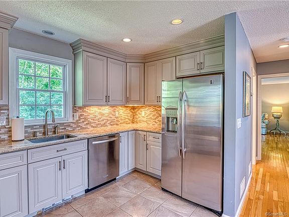 Gorgeous updated colonial located in a quiet neighborhood in Canton! This spacious stand alone home features 3 bedrooms and 2 full bathrooms, hardwood floors throughout the main floor and a home flooded with natural light, thanks to the vaulted ceilings in the living room. This unit is move in ready, everything is updated! Open floor plan kitchen and living room are a dream for entertaining. Completely updated kitchen with custom cabinets, gorgeous backsplash, and stainless appliances! One bedroom on the main floor is perfect for one floor living, or use it for a home office or dining room. Brand new carpet upstairs in the comfortable bedrooms, complete with ample closet space! The finished basement is a huge bonus space- it's perfect for a family room or play room! There are sliders from the main level out to the large back out deck- it's a lovely spot for enjoying the landscaped yard. This neighborhood is in a wonderful location, close to the Canton schools, and near many shopping and dining options. Easy access to Rte 44 for commuting. Don't forget to view our 3D walk through!