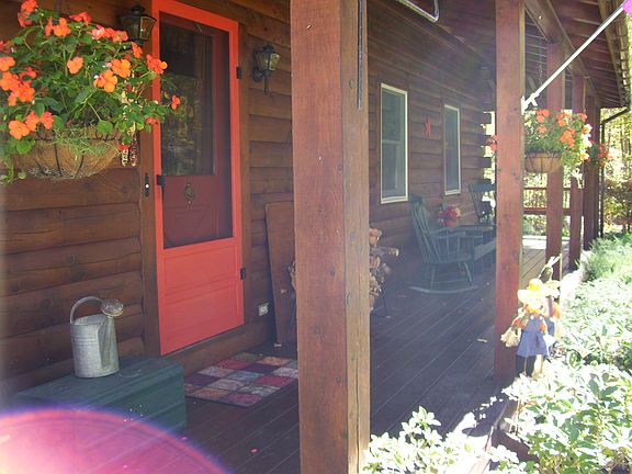 Welcome to the dream - log home living Inviting and beautiful Northeastern log home set back from the road on 4 level acres. Keep the partially wooded acreage or create your own mini-farm. Sit a spell on the large wrap-around front porch and entertain on the patio overlooking the park-like backyard. The interior welcomes you with its exposed log walls and beamed wood ceilings. The family room's cathedral ceiling, balcony and wood-burning stove is the perfect hideaway for the cool days. Gather family and friends in the dining room and in the large eat-in kitchen with lots of prep and storage space. The full unfinished basement, attic, and bonus area over the garage adds extensive expansion and storage space. Updated lighting, dishwasher, gutters, and a brand new furnace. Don't miss this opportunity to be the second owner of this well-maintained and loved home.