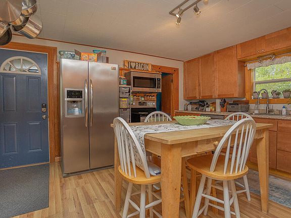 Charming 3-4 bedroom home across the street from the Sandy River. Well maintained with many updates from newer paint, flooring and an updated 1st floor bathroom. Enjoy the large eat in kitchen with SS appliances, new flooring and new cabinets, or use the formal dining room that has a pellet stove. There is a 1st floor bedroom, large living room with heat pump / AC. The 2nd floor has the primary bedroom which has a half bathroom and heat pump / AC. There is a 3rd bedroom as well another room that could be used as a 4th bedroom or an office. Beautiful wood floors throughout the home. There is additional space upstairs that could be finished or used for storage and a large attic. The attached shed provides even more storage or finish that off for a large mudroom! Conveniently located to shopping and only 12 minutes to downtown Farmington & UMF, 15 minutes to Belgrade Lakes!